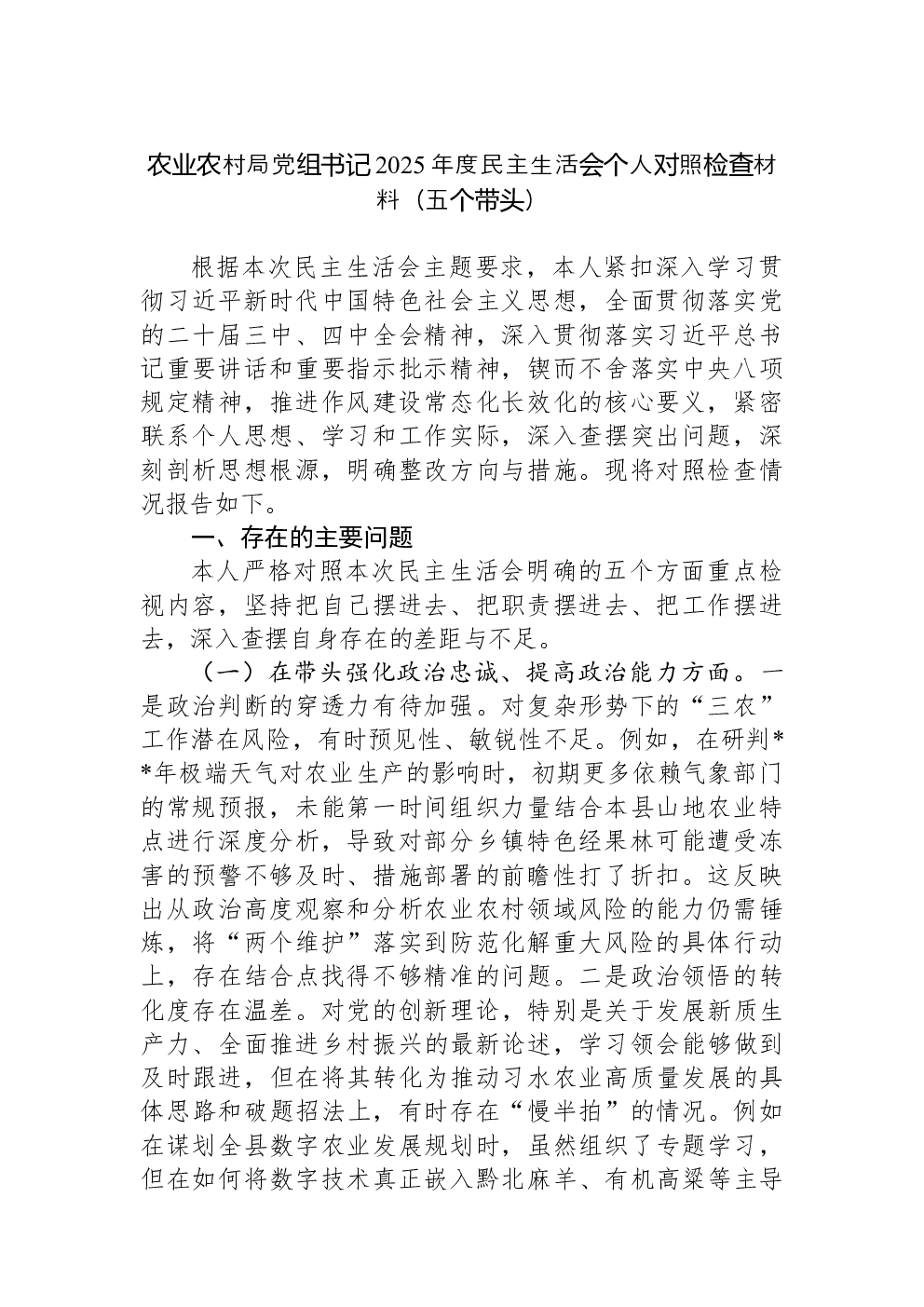 (22篇)2022年度民主生活会六个带头对照检查材料
