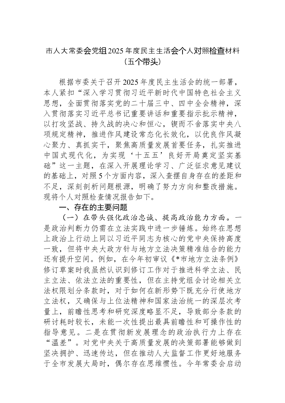 (22篇)2022年度民主生活会六个带头对照检查材料