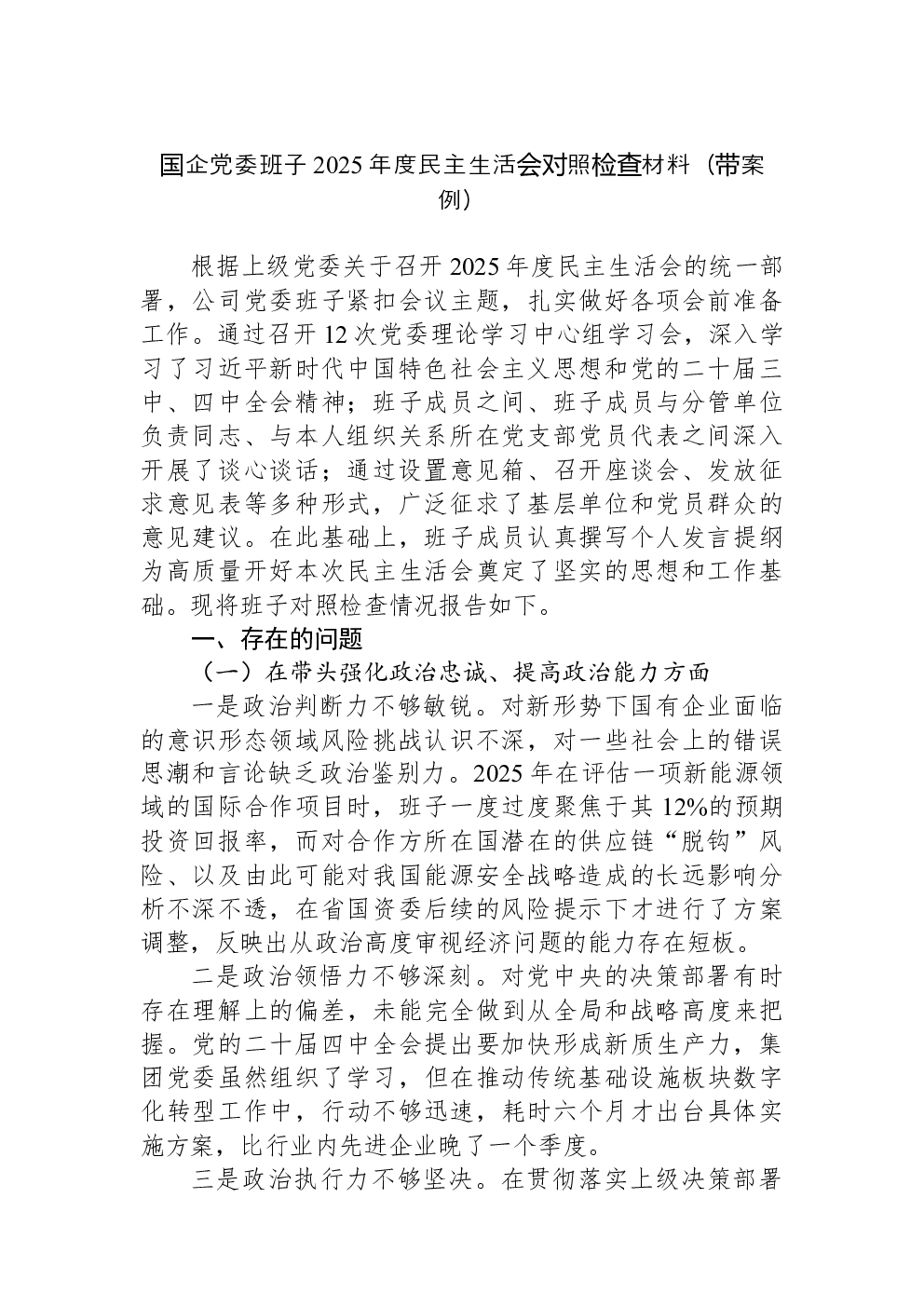 领导班子2022年民主生活会(六个带头)对照检查材料