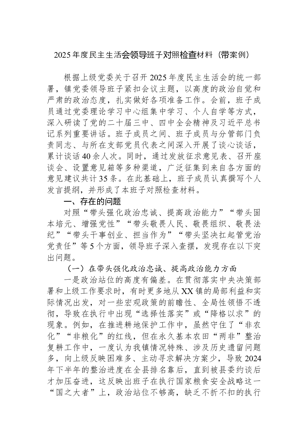 领导班子2022年民主生活会(六个带头)对照检查材料