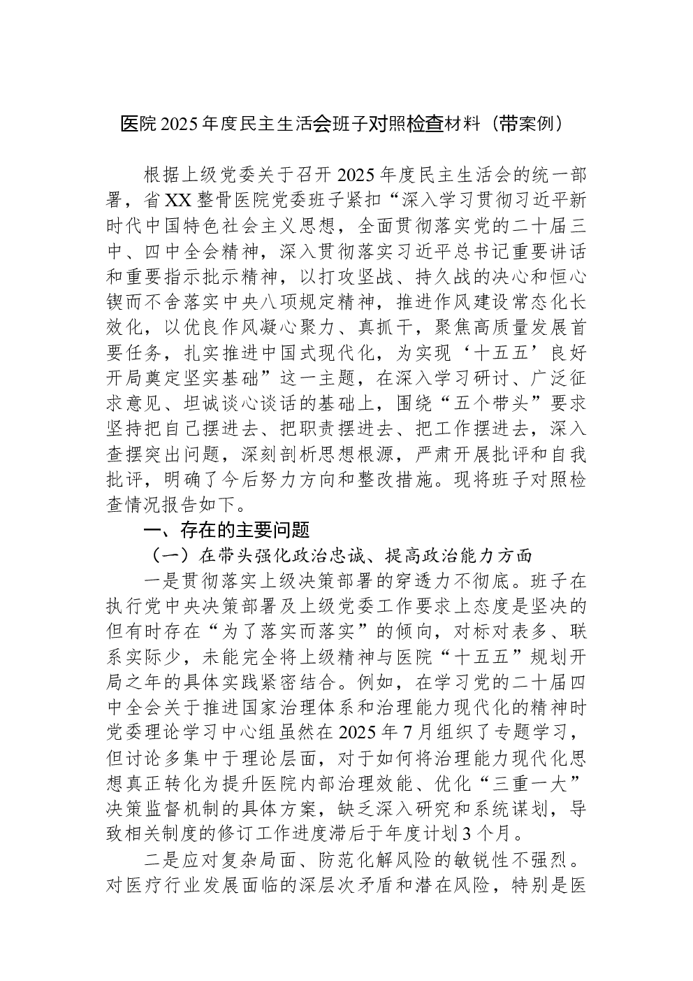 领导班子2022年民主生活会(六个带头)对照检查材料
