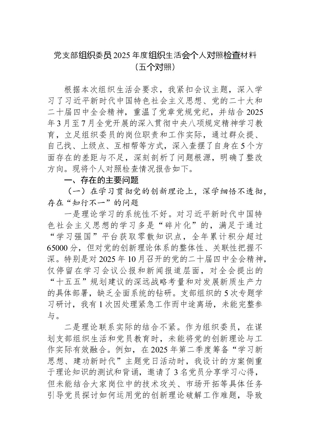 2022年度组织生活会个人对照检查材料(党员对照六个方面)