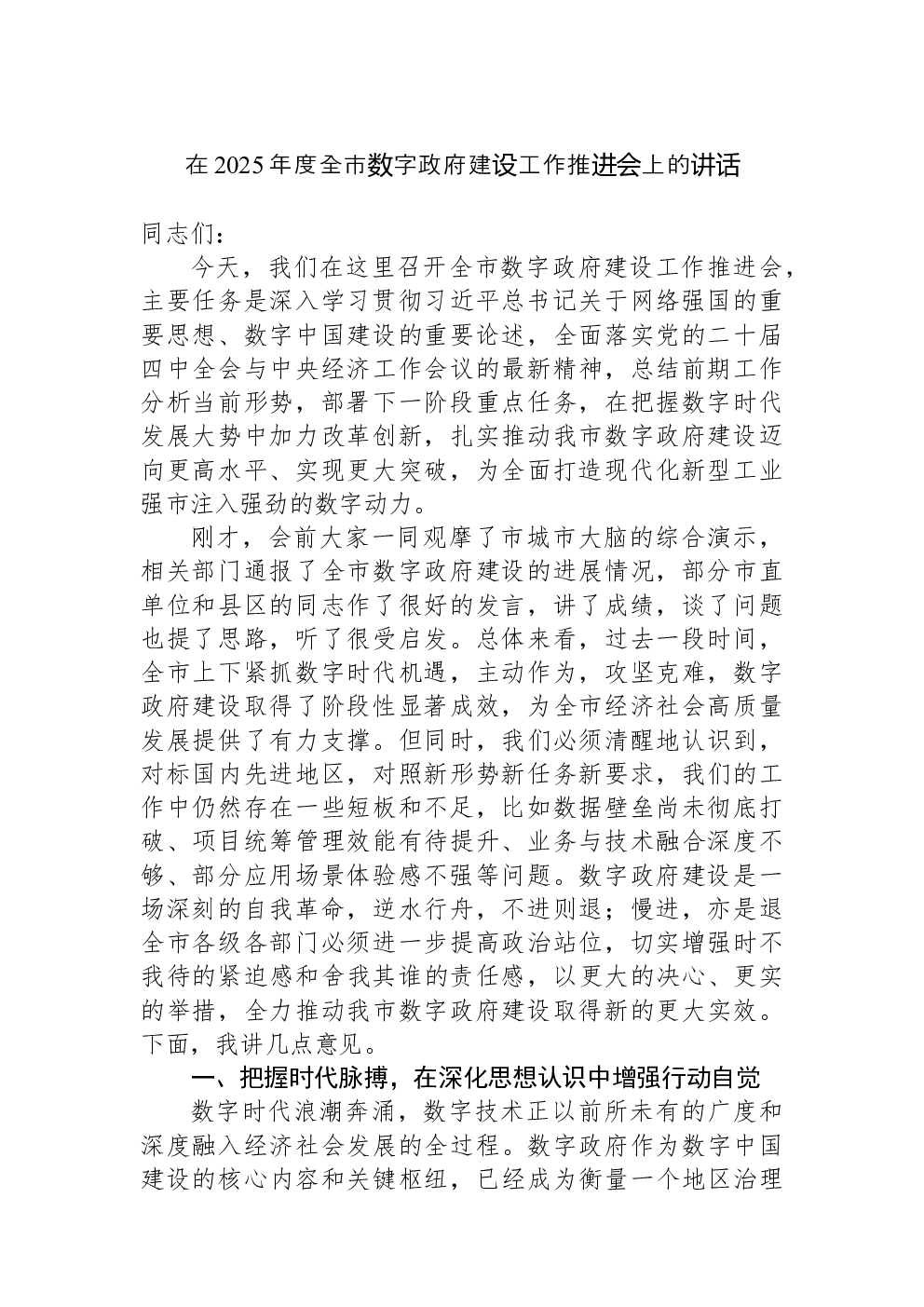 当前位置 > 领导讲话