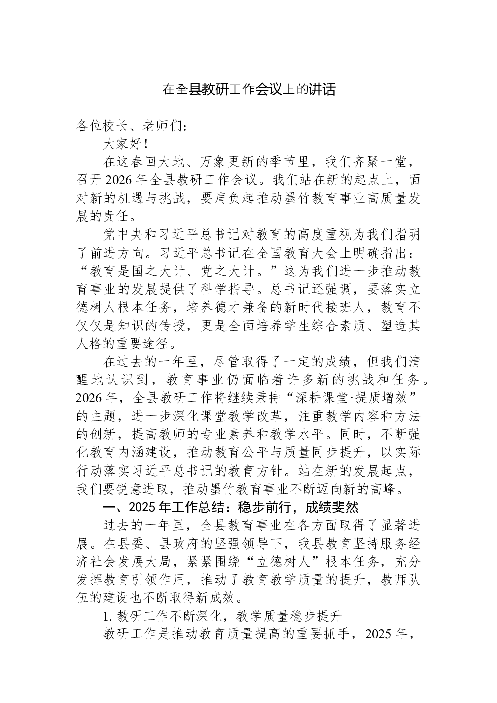 当前位置 > 领导讲话